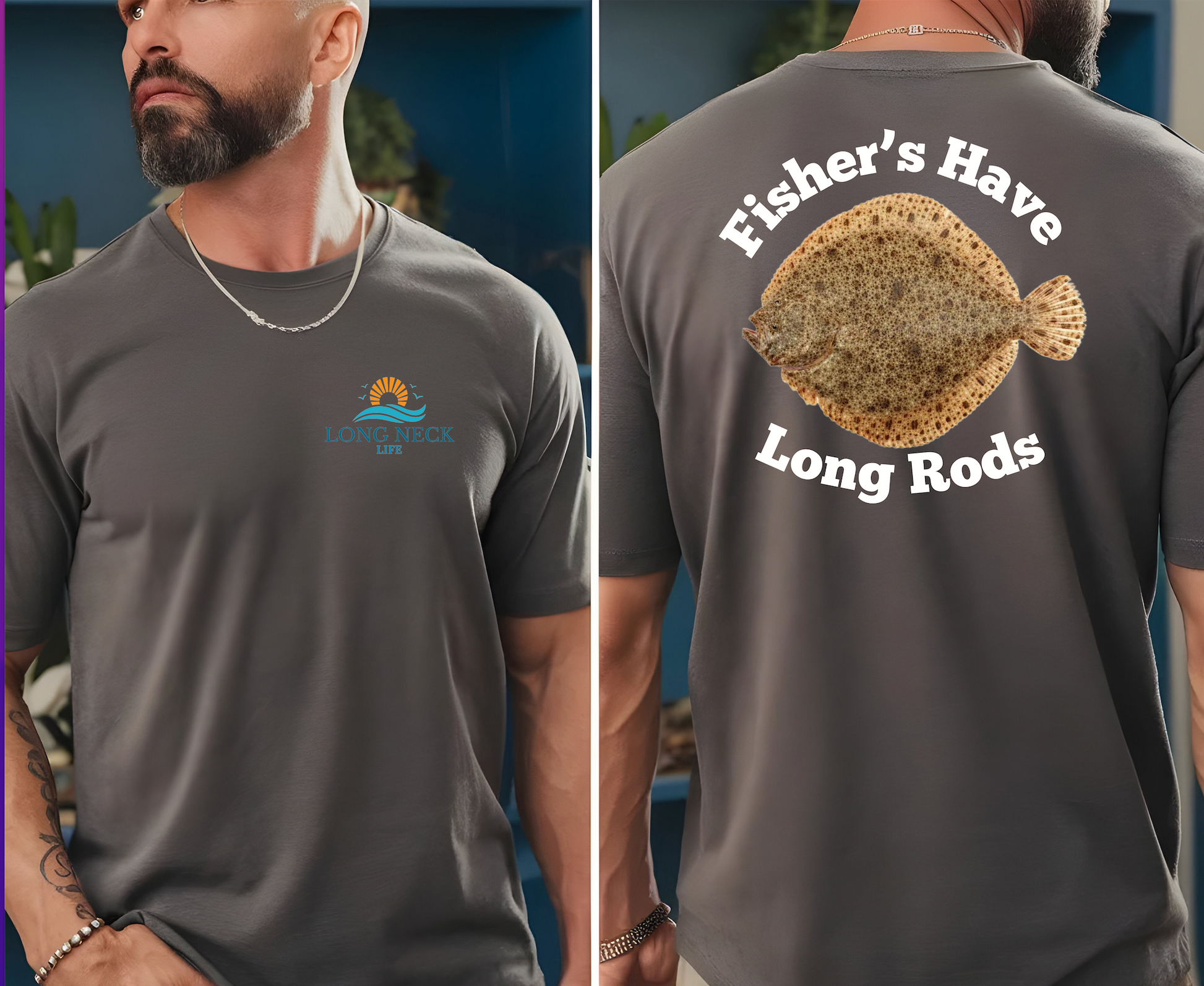 Embrace your passion for flounder fishing with our exclusive "Fisher's Have Larger Rods" t-shirt. Crafted for enthusiasts who know the thrill of reeling in the perfect catch, this tee blends humor with dedication to the art of fishing.