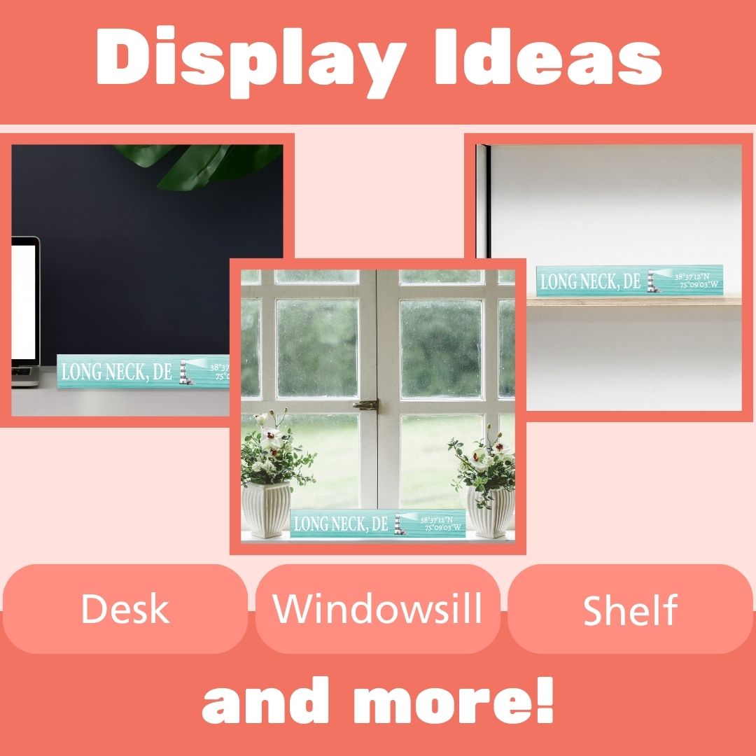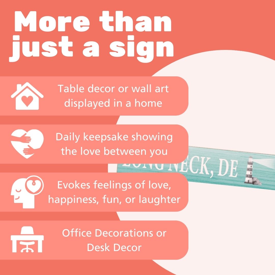 This Delaware sign measures 12 x 2 x 0.75 inches and is ideal for tabletop display on surfaces like shelves or desks. Its Long Neck design complements entryways, offices, porches, and coastal farmhouse interiors, fitting seamlessly with beach house decor. An excellent choice for birthday, Christmas, or housewarming gifts, it also serves as a meaningful keepsake for Delaware vacations. Crafted from premium wood, this durable plaque offers lasting appeal. Proudly hand-crafted in the USA, it embodies quality and authentic American craftsmanship.