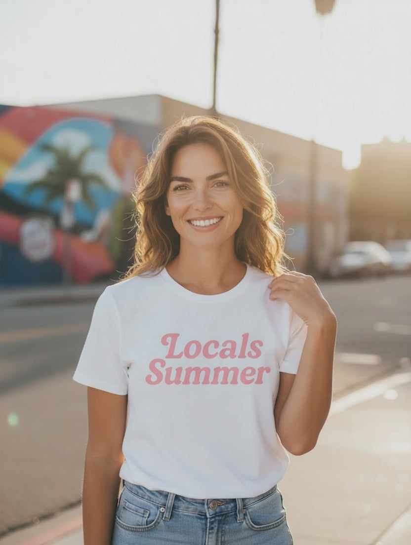Locals summer t-shirt - a shirt where people who live in a beach town are celebrating the tourists going home and have the beach to themselves. Perfect for those who enjoy the calm after the busy tourist season. Ideal for locals in beach towns to showcase their pride and enjoy the peaceful atmosphere. Relevant for summer celebrations, beach gatherings, and vacation vibes.
